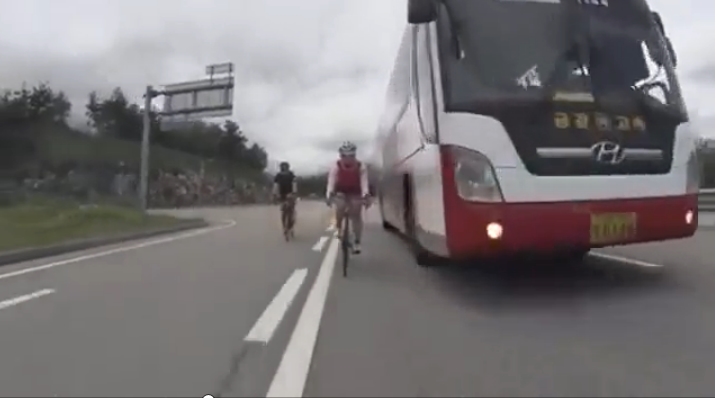 동영상 보시면 자전거는 도로우측 가장자리에 붙어서 잘 가고 있습니다. 철저히 법을 지키면서요.