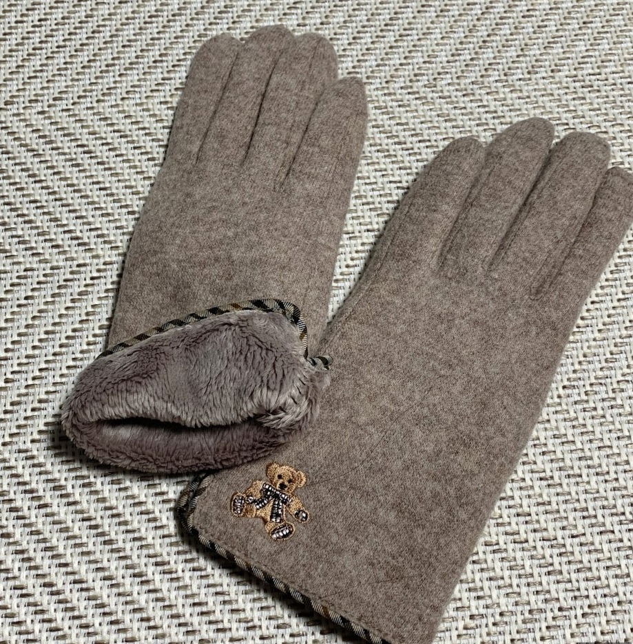 손등부분에 테디베어 자수가 있고 털로 안감이 되어있습니다.